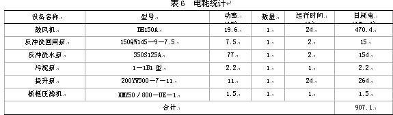 該工程污水設(shè)施運(yùn)行時(shí)電力消耗情況見表6。