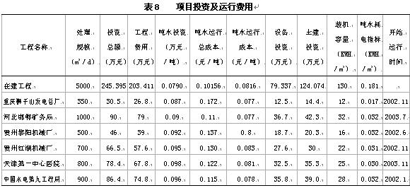 6.2.2 項(xiàng)目投資及運(yùn)行費(fèi)用(表8)