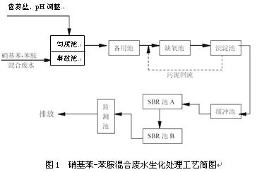 經(jīng)過馴化的高效微生物菌群對工業(yè)廢水中的硝基苯-苯胺污染物有很好的去除效果;采用A/SBR工藝,合理地控制條件,可以保證出水達到國家一級排放標準。對于硝基苯-苯胺工業(yè)廢水處理來說,是經(jīng)濟可行的。