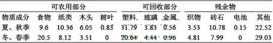 表3阿蘇衛(wèi)新鮮生活垃圾含水率
