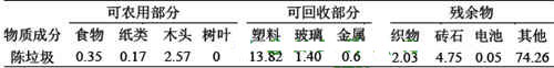 表1阿蘇衛(wèi)2001~2003年新鮮垃圾平均組成(干基)w/10-2