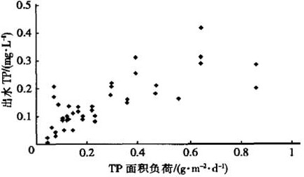 **TP濕地面積負(fù)荷與出水濃度之間的關(guān)系