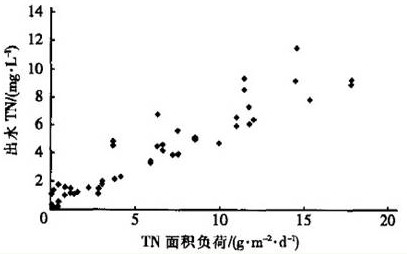 **TN濕地面積負(fù)荷與出水濃度之間的關(guān)系