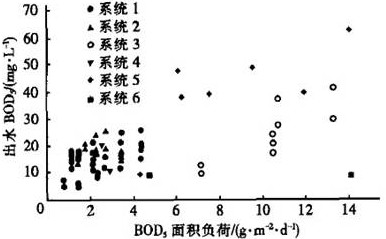 **BOD5濕地面積負(fù)荷與出水濃度之間的關(guān)系