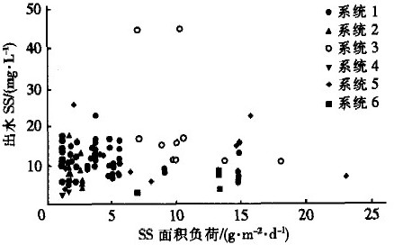 **SS濕地面積負(fù)荷與出水濃度之間的關(guān)系