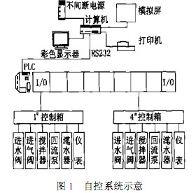 SBR自動(dòng)控制系統(tǒng)由監(jiān)控管理計(jì)算機(jī)(上位機(jī))、可編程控制器(PLC)、電氣控制柜、現(xiàn)場(chǎng)執(zhí)行機(jī)構(gòu)及現(xiàn)場(chǎng)監(jiān)測(cè)儀表組成?刂葡到y(tǒng)見(jiàn)圖1。