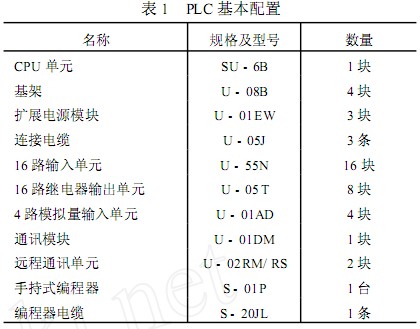 PLC系統(tǒng)的硬件配置見(jiàn)表1。