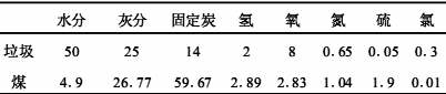 一般煤和垃圾中含有有害元素硫、氮、氯及較多灰分等,它們會在燃燒過程中釋放出來并生成污染性物質(zhì)。附表給出了我國典型垃圾和煤的組成成分,可以看出,兩者的灰分和氮含量相當(dāng),而煤中的硫含量遠(yuǎn)大于垃圾,氯含量卻遠(yuǎn)小于垃圾。
