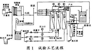 試驗采用混凝與超濾工藝組合作為反滲透預處理工藝,工藝流程見圖1。