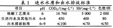 江陰市某生物有限公司廢水水質情況如表1所示.核酸工藝廢水水量為80。生活及其他污水水量為200t/d。