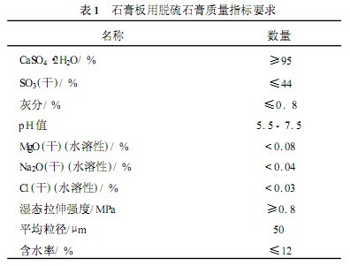 (1)脫硫石膏經(jīng)處理后成為β- 半水石膏即建筑石膏 , 以此為原料可生產(chǎn)多種石膏制品。如紙面石膏板、 石膏砌塊、 裝飾石膏天花板、 石膏紙質(zhì)纖維板、 石膏木質(zhì)纖維板、 粉刷石膏、 嵌縫石膏、 填充石膏等[3 ] 。石膏板因其優(yōu)良的防火、隔音和隔熱性能 ,被大量用于墻壁及天花板等方面 ,尤其是紙面石膏板 ,石膏所帶的約 21 %的結(jié)晶水在發(fā)生火災(zāi)時(shí)對高溫的阻隔和燃燒有很好的抑制效果。石膏中易引起質(zhì)量問題的不純物質(zhì)有 K、 Na、 NH3、 Fe、 Ca、 Mg等水溶性無機(jī)鹽或有機(jī)物。此類鹽如果含量過多 ,形成時(shí)會(huì)出現(xiàn)硬化過早或過遲 ,導(dǎo)致硬化體強(qiáng)度低。對于脫硫石膏來說 ,能引起質(zhì)量問題的是Na、 Mg、 Al、 Fe 等不純物。此類不純物在成形后的干燥過程中 ,隨干燥程度而移向表層附近 ,含不純物多時(shí) ,會(huì)出現(xiàn)表面粉化或可能與硫酸鈣生成復(fù)合鹽。粉化現(xiàn)象會(huì)使外觀變得不平整、 不美觀。石膏板用脫硫石膏的質(zhì)量指標(biāo)見表1[4 ] 。