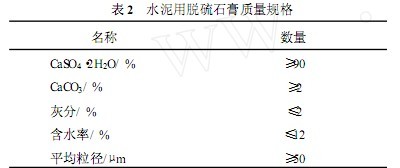 (2)利用脫硫石膏作水泥緩凝劑。水泥用石膏中的不純物是炭、 亞硫酸鈣、 金屬離子等。炭一般在混入水泥、 混凝土的時(shí)候 ,易進(jìn)入浮出表面的浮漿中;活性炭吸附性強(qiáng) ,易使混凝土質(zhì)量降低;亞硫酸鈣超過一定量與石膏共同存在的時(shí)候 ,易引起凝結(jié)時(shí)間延長。水泥用脫硫石膏質(zhì)量規(guī)格要求如表2[4 ] 。