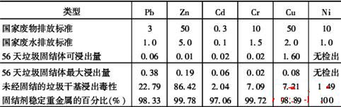表4 生活垃圾56天固結(jié)體H重金屬浸出毒性(mg/L)![]() |