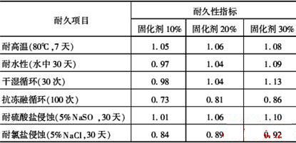 在本實驗范圍內(nèi),經(jīng)過高溫80℃下7天,強度提高5%~8%,在水中30天強度基本沒有損失,并且隨固化劑用量增加,固結(jié)體耐水性能提高。故在高溫和水中環(huán)境下,生活垃圾固結(jié)體均能滿足道路工程應(yīng)用的技術(shù)要求。此外,由試驗結(jié)果分析還可以看出,經(jīng)100次凍融循環(huán)后,生活垃圾固結(jié)體強度損失為2%~14%,并隨固結(jié)劑用量增加,固結(jié)體抗凍融循環(huán)性能提高?梢哉J為,當固化劑用量在20%以上時,生活垃圾固結(jié)體基本滿足工程所需的抗凍要求。生活垃圾固結(jié)體的抗硫酸鹽侵蝕性能是其耐久性的一個重要方面。由于地下水及一些土壤中常含有一定濃度的SO42-,使固結(jié)體經(jīng)常受到硫酸鹽侵蝕。硫酸鹽對陳腐生活垃圾固結(jié)體的侵蝕是一個復雜的物理化學過程。生活垃圾的孔隙和微裂縫對其抗硫酸鹽侵蝕能力影響很大。