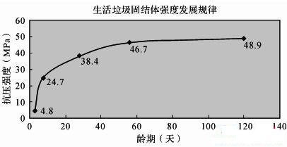 (1)本固結(jié)技術(shù)可使生活垃圾固結(jié)體28天強度達38MPa以上,并且長期強度無倒縮現(xiàn)象。
