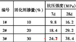 由試驗結(jié)果可知,隨固化劑摻量增加,生活垃圾固結(jié)體的強度提高。當固化劑摻量達3%時,生活垃圾固結(jié)體強度7天達24.7MPa,28天強度達38.4MPa。同時還可以認為,生活垃圾固結(jié)體早期強度隨固化劑用量增加而提高。
