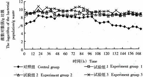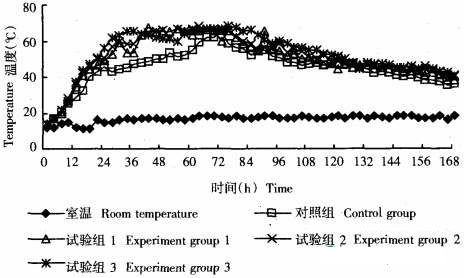 實(shí)驗(yàn)結(jié)果表明,生活垃圾好氧堆肥的過(guò)程中,高溫菌群的加入增加了微生物總數(shù),加快了高溫菌群的繁殖,使堆肥高溫階段得以提前,試驗(yàn)組比對(duì)照組提前27h進(jìn)入高溫階段,使高溫階段延長(zhǎng)36—51h。