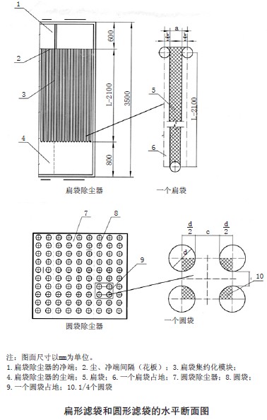 扁袋除塵器內(nèi)部的濾袋排列有序,氣流保持穩(wěn)定,因而阻力小,檢修方便;圓袋內(nèi)部濾袋呈滿天星布列,無專用氣流通道,氣流的穩(wěn)定性差,阻力大,檢修不便。