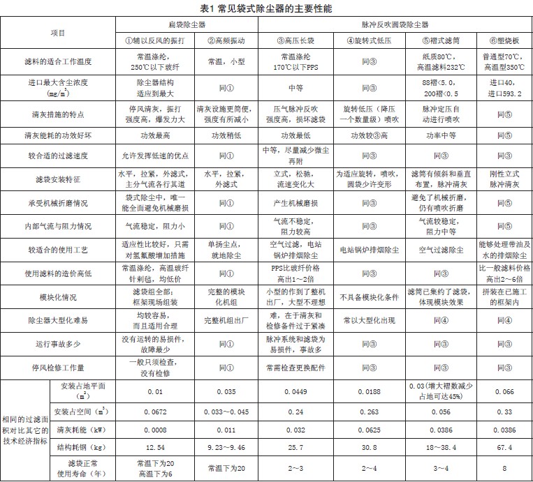 機(jī)械沖擊振打扁袋和脈沖圓袋除塵器性能對比