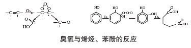 臭氧對水中有機物的氧化過程可分為直接氧化和間接氧化,直接氧化是臭氧與水中有機物直接反應(yīng)生成羧酸等簡單有機物或直接氧化生成二氧化碳和水的過程,這類反應(yīng)一般發(fā)生在溶液呈酸性(尤其是pH<4)的反應(yīng)體系,或溶液中存在大量碳酸鹽等自由基反應(yīng)鏈終止劑的反應(yīng)體系。在直接氧化反應(yīng)的條件下,臭氧與含有雙鍵等不飽和化合物以及帶有供電子取代基(酚羥基)的芳香族化合物反應(yīng)速度較快,屬于傳質(zhì)控制的化學(xué)反應(yīng),臭氧與烯烴或苯酚的反應(yīng)即屬此類,其反應(yīng)機理見圖示;但是,飽和的有機物及酚羥基以外的其它有機物與臭氧的直接反應(yīng)速度卻很慢,屬于由反應(yīng)速度控制的化學(xué)反應(yīng)。