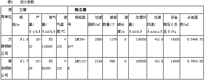 以太原鋼鐵公司和青島鋼鐵公司使用情況為例,其設(shè)計(jì)參數(shù)及實(shí)際運(yùn)行效果見(jiàn)表2和表3。