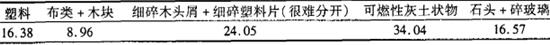 垃圾堆肥處理廠產(chǎn)生的堆肥剩余物,經(jīng)過(guò)風(fēng)力和人工將大塊物件如泡沫、竹筐、大塊塑料、金屬以及可回收利用的塑料袋(方便面袋)等分揀后,剩下的主要由尺寸較小的廢舊塑料、細(xì)木頭片、破布頭及泥土狀物質(zhì)組成,約占垃圾總量的10%~20%。其特點(diǎn)是發(fā)熱值較高,與國(guó)外的垃圾熱值相當(dāng),適于焚燒處理。