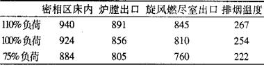 該流化床焚燒爐于2000年11月投入正常運(yùn)行,實(shí)踐表明,在不加任何輔助燃料條件下,額定負(fù)荷下?tīng)t膛出口溫度可控制在850℃以上。表3給出了不同負(fù)荷下焚燒爐各處溫度。可見(jiàn),該焚燒爐燃燒狀況良好。