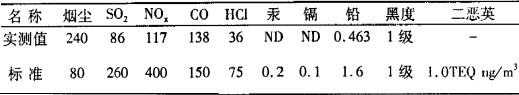 為了控制污染物的排放,設(shè)計(jì)時(shí)采用文丘里+噴淋塔+兩級(jí)湍球塔煙氣凈化組合工藝對(duì)尾氣洗滌凈化,目的是為了控制顆粒物、HCl、SO2等酸性氣體的排放。在額定負(fù)荷下,燃用設(shè)計(jì)燃料時(shí),凈化后的煙氣經(jīng)黑龍江省環(huán)境監(jiān)測(cè)站測(cè)定,結(jié)果如表4所示。