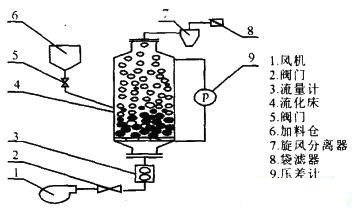 氣流分選裝置如圖1所示。稱取一定質(zhì)量的篩分物料加入裝置中,由風(fēng)機(jī)產(chǎn)生的氣流經(jīng)分布板流經(jīng)床層使物料松動(dòng),沉降速度小于操作氣速的顆粒被上升氣流帶出裝置,由旋風(fēng)分離器和袋濾器收集成為輕組分;大部分金屬顆粒落入裝置底部,成為重組分產(chǎn)品回收。采用微波消解聯(lián)合ICP-AES(電感耦合等離子體-原子發(fā)射光譜)測(cè)定輕、重產(chǎn)物中主要金屬含量。