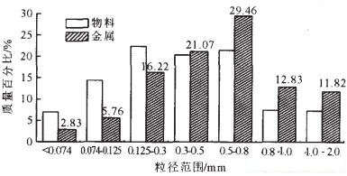 圖2破碎產(chǎn)品中物料和金屬分布