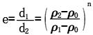 顆粒沉降速度的大小與顆粒粒度、密度及形狀等因素有關(guān)。在同一介質(zhì)中,會(huì)出現(xiàn)密度、粒徑、形狀不同的顆粒具有相同沉降速度的等降現(xiàn)象,相應(yīng)的顆粒稱為等降顆粒,密度小的顆粒粒度與密度大的顆粒粒度之比稱為等降比,以e表示。球形顆粒在不同雷諾數(shù)范圍內(nèi)的等降比為[11]:
