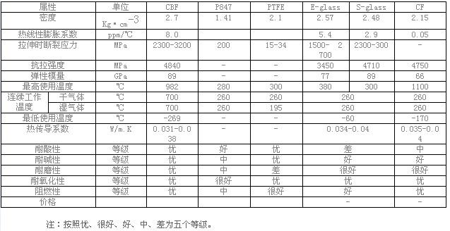 實(shí)際使用的在高溫端(200~300/℃)適用的纖維有P84,聚四氟乙烯(PTFE)及玻璃纖維等。特殊高溫端(大于300℃),可選用的纖維有陶瓷纖維、碳纖維、高硅氧纖維及玄武巖纖維等。目前,國內(nèi)外的經(jīng)驗(yàn)表明能適應(yīng)200℃以下工作溫度過濾材料主要有P84(聚酰亞胺纖維),PTFE(聚四氟乙烯纖維),CF(Ceramic Fiber,陶瓷纖維),BF(玄武巖纖維)等。