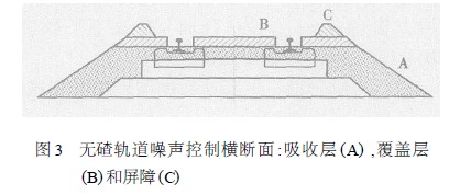 為了使無碴軌道在噪聲抑制性能上基本與有碴軌道的相當,甚至比其更好,主要采取下面3 個措施,如圖3 所示: