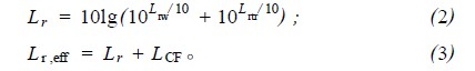 已有的鐵路噪聲模型給出了輪軌間不平順度與軌道旁邊一定距離測得聲壓間的一種線性關(guān)系。合成有效不平順度與聲壓間的簡單關(guān)系如下: