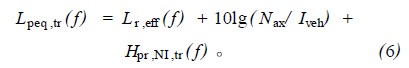 其中:Lpeq,tr為由于軌道輻射產(chǎn)生的聲壓; Hpr,NI,tr為軌道轉(zhuǎn)換函數(shù)。