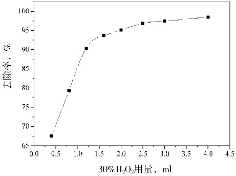 | 圖2 H2O2 量對苯酚去除率影響 |