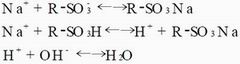 進(jìn)水按一定比例通過C 室和D 室。離子在D 室的行為可以理解為四個過程: ①離子在電場作用下向濃水室遷移; ②離子與樹脂的結(jié)合; ③水的電離和遷移, 遷移到C 室中的H+ 和OH- 離子又結(jié)合成水; ④由于電場作用, 離子不斷從樹脂上離解, 使樹脂不斷再生。它們在電場作用下達(dá)成平衡(以N a+ 為例) :