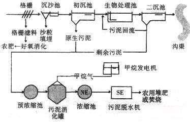 圖2污泥消化的技術(shù)裝備及流程圖