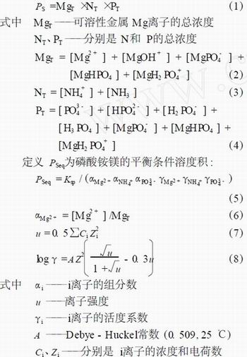 關(guān)鍵詞: 磷酸銨鎂; 化學(xué)沉淀; 條件溶度積; 廢水處理