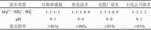 | 表1 MAP法處理不同氨氮廢水最佳pH及氨氮去除率 |