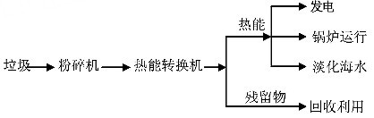近年來美國的專家研究設(shè)計(jì)了一種熱能轉(zhuǎn)換機(jī),通過其產(chǎn)生的高溫來處理垃圾廢物,這種熱能轉(zhuǎn)換機(jī)可以高效率的處理未經(jīng)分類的垃圾,只剩下很少的無毒殘留物,廢物的排放標(biāo)準(zhǔn)符合國際標(biāo)準(zhǔn),其處理流程見圖2。