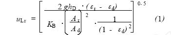 在忽略流體與反應(yīng)器壁摩擦阻力的情況下給出了氣提式反應(yīng)器中液體上升流速的計算公式[7 ] . 該公式經(jīng)過簡單改變后即可應(yīng)用于一體式膜2生物反應(yīng)器中液體上升流速uLr的計算,