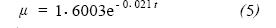 清水粘度(μ) 可由經(jīng)驗公式(5) 算得: