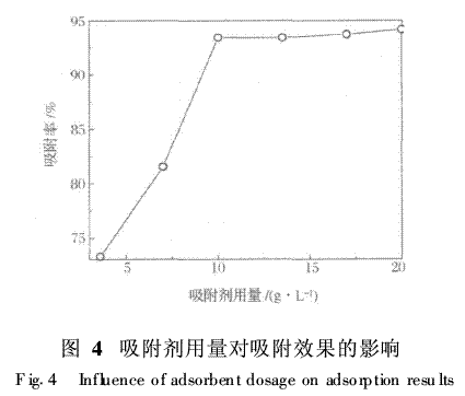 由圖4可見,隨著枯草芽胞桿菌用量的增加,微生物對廢水中鎘的吸附率呈上升趨勢,直至達(dá)到吸附平衡。從開始到吸附劑用量達(dá)到10g/L(濕重)時(shí),吸附率有明顯的提高,達(dá)到最大為93·44%。此后,吸附劑用量增加時(shí),微生物對廢水中鎘的吸附率增加緩慢。