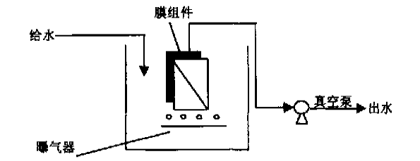 微濾膜,孔徑0.05μm ,直接懸掛于膜濾出水區(qū)。原污水經(jīng)毛發(fā)過濾器過濾后,進(jìn)入高位水箱,再經(jīng)流量計進(jìn)入生物降解區(qū),有機(jī)物在這里被微生物分解,混合液經(jīng)導(dǎo)流板進(jìn)入膜濾出水區(qū),在真空泵的抽吸作用下經(jīng)膜過濾后進(jìn)入出水槽,濃縮液可經(jīng)底部連通管返回生物降解區(qū),形成回流,底部采用曝氣器曝氣。