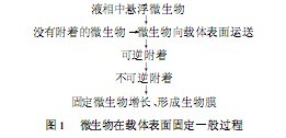微生物在載體表面附著固定過程可以看作載體表面與微生物表面間的相互作用,從液相理論分析,細(xì)菌在載體表面附著、固定過程如圖1所示。