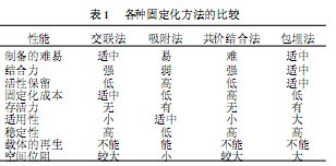 1.2 細(xì)胞固定化技術(shù)方法比較