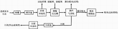 圖1 處理造紙廢水的混凝一渦凹?xì)飧」に嚵鞒?/p>