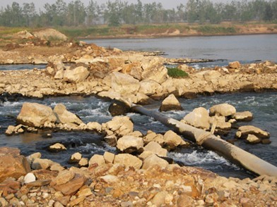 冀灤紙業(yè)從廠區(qū)埋設污水管道7000 米到灤河東灘“三北防護林”,上圖為直徑50公分的排污管道穿過灤河