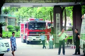 昨日,重慶三五三三印染總廠大門外已拉起警戒線,廠內正對事故現場進行處理。